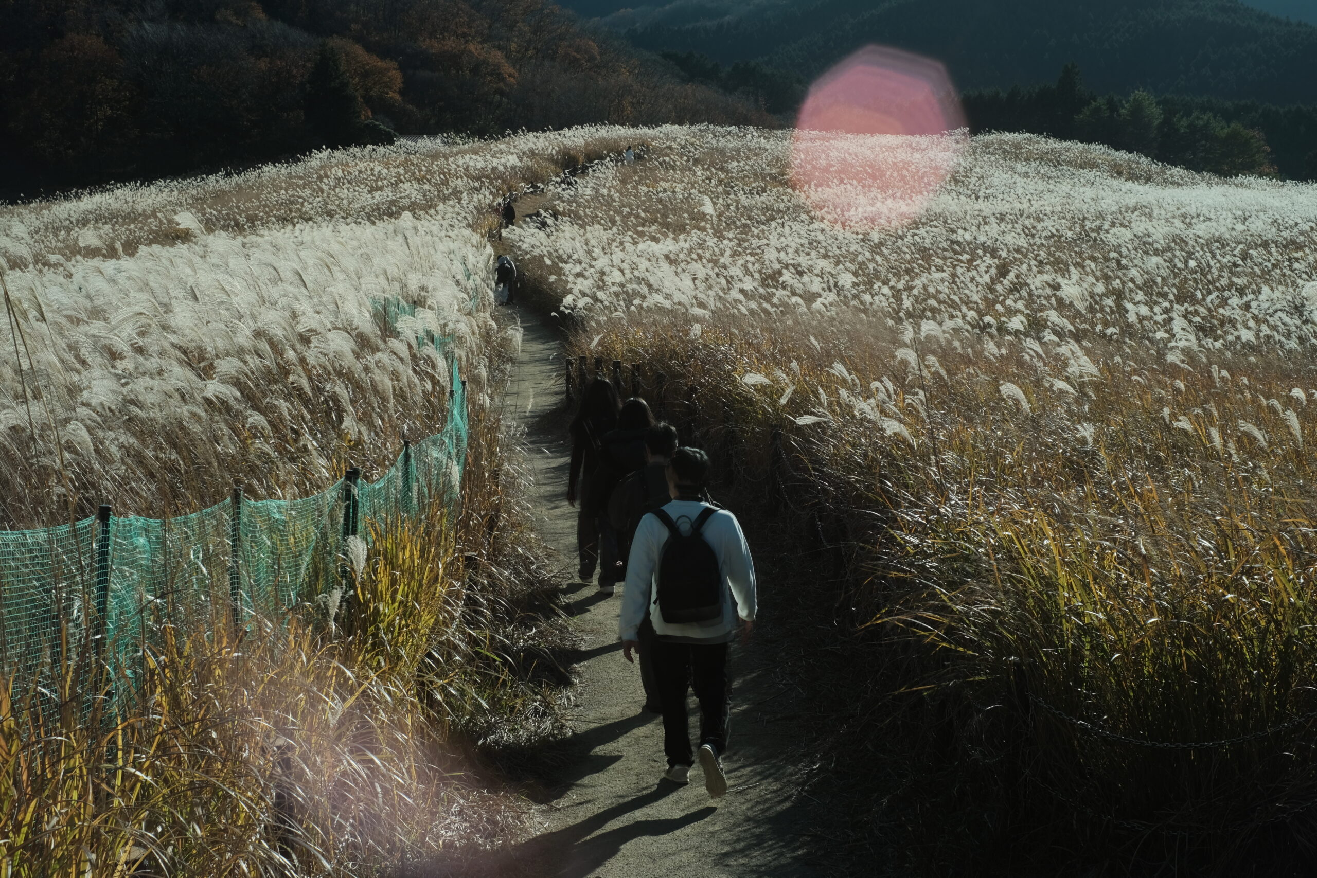 数多くの人が訪れる名所だけあって、日没前の黄金色に輝くススキは言葉にならないぐらい綺麗でした。